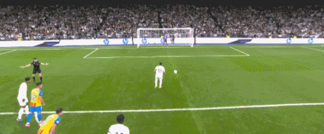 Phút 15, Mbappe bị đối thủ giữ trong vòng cấm và ngã xuống đất. Cùng lúc đó, Bellingham bị một cầu thủ phòng ngự đẩy ngã. Trọng tài đã can thiệp thông qua VAR và thay đổi quả phạt đền. Sau đó, Mbappé thực hiện quả đá phạt đền giúp Real Madrid dẫn trước 1-0.