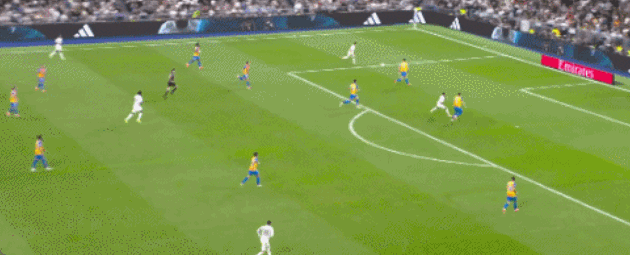 Phút 44, Bellingham thoát ra khỏi đầu vòng cấm và ghi bàn bằng một cú sút xa, giúp Real Madrid nâng tỷ số lên 3-0.