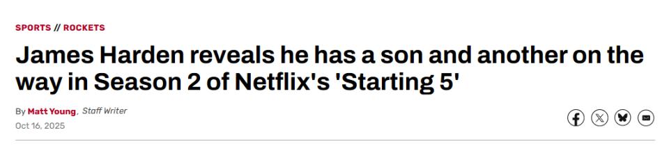 "Bạn biết đấy, Harden rất riêng tư," người đại diện của Harden, Troy Payne nói. “Mọi người sẽ nói, 'Cái gì?' Họ sẽ bị sốc nhưng đúng vậy, anh ấy đã là một người cha”. “Harden luôn ở bên con trai mình và anh ấy luôn là một người cha rất tốt.”