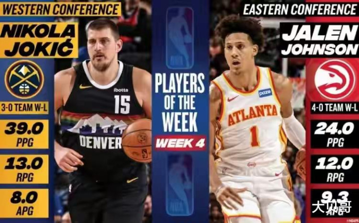 Hôm nay giải đấu đã cập nhật Danh sách hay nhất trong tuần mới nhất, trong đó Jokic ở miền Tây và Jaylen Johnson ở miền Đông. Jokic đã dẫn dắt Nuggets với thành tích 3 trận thắng và 0 trận thua vào tuần trước. Cả hai đều có thể ghi triple-double với 39 điểm, 13 rebound và 8 kiến tạo. Jaylen Johnson đã dẫn dắt đội đạt kỷ lục 4-0 vào tuần trước, ghi trung bình 24 điểm, 12 rebound và 9,3 kiến tạo mỗi trận. Sau khi mất Trae Young, Hawks cảm thấy mạnh mẽ và kiên cường hơn.